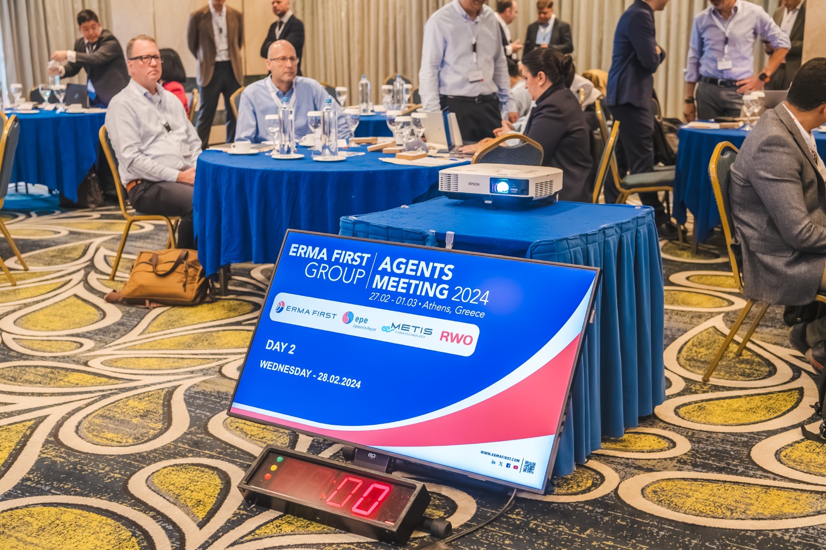 The inaugural ERMA FIRST Group Agents Meeting, which opens with dinner on the evening of Tuesday, 27 February, sees agents from 22 countries gather at the Divani Apollon Palace & Thalasso, Athens. With closed sessions taking place on days two and three – and on-site visits on the final day – the event is exclusively for ERMA FIRST Group employees, agents, and partners.